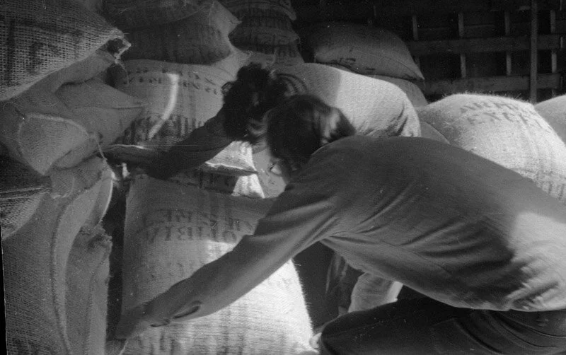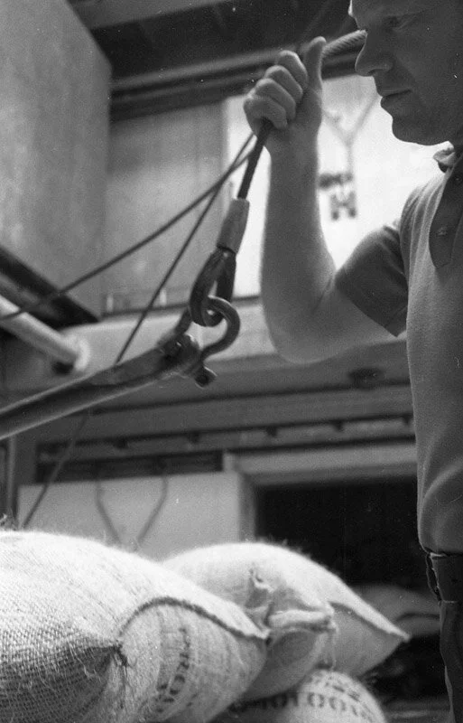 Among the many hands that brought coffee beans from plantations in the developing world to markets in the wealthy countries of North America and Europe in 1973 were those of the Longshoremen working in the holds of cargo vessels on the San Francisco waterfront. I was a Ship Clerk, down in the cargo holds with them, tallying. I took these, and hundreds more photographs, on the waterfront throughout the 1970's.